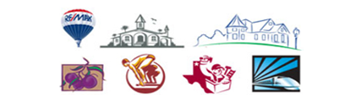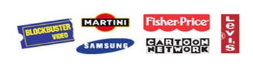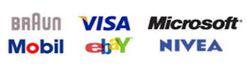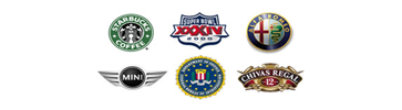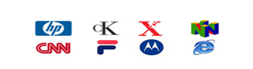 Company name inside/squares/ovals/rectangles or combined shapes.